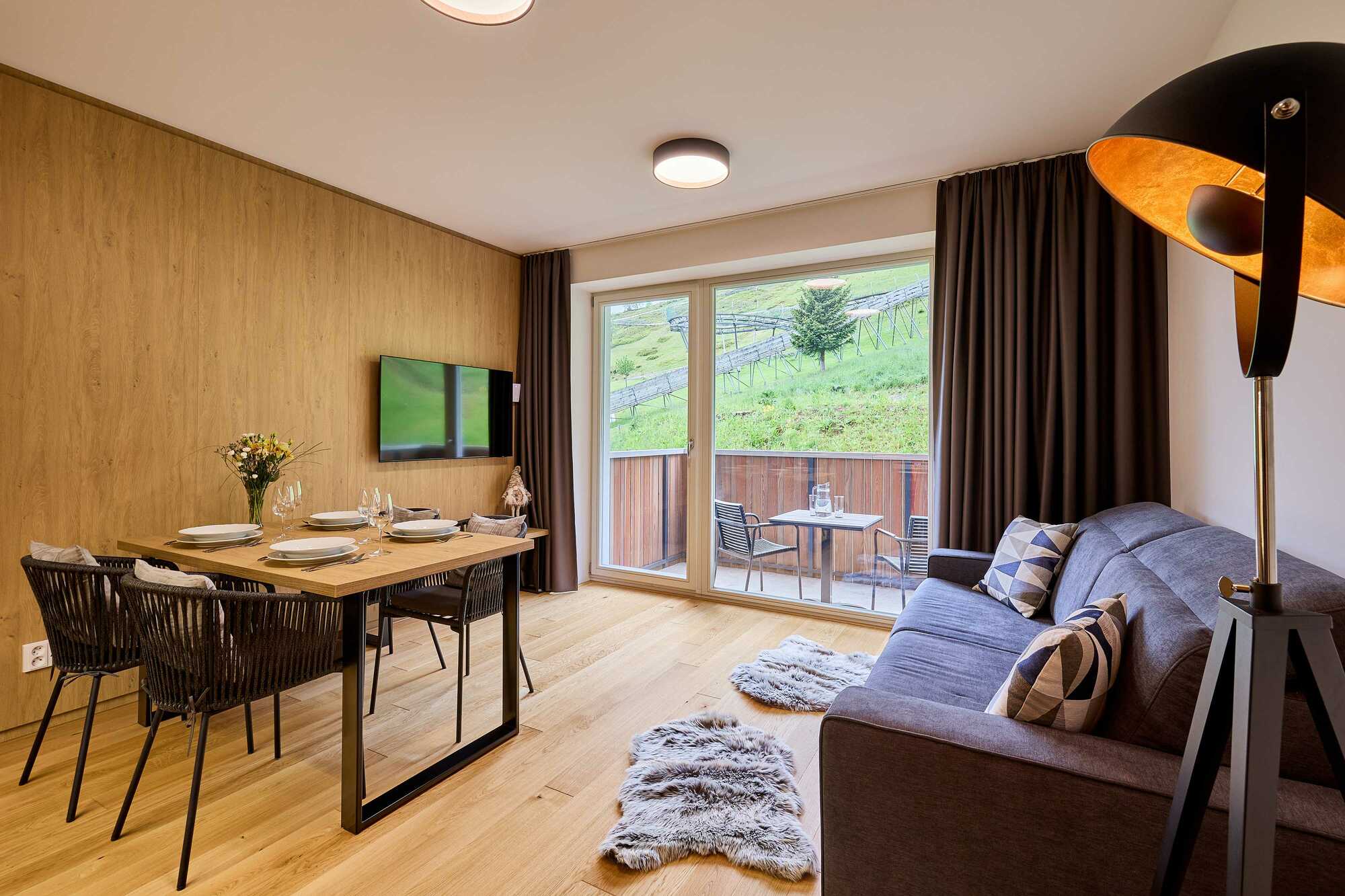 Prostorný a velice vkusně zařízený apartmán se nachází ve 2. patře. Obývací pokoj s rozkládacím lůžkem pro pohodlné spaní nabízí pohodlí pro společné chvíle s rodinou či přáteli. Z obývacího pokoje je vstup na balkon vybavený nábytkem k posezení a odpočinku. Výhled z balkonu je na klidnou část Pece pod Sněžkou.